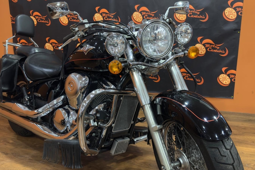 La Kawasaki VN 900 Classic es una atractiva custom repleta de cromados y con un clásico motor de dos cilindros en V con inyección electrónica que entrega más par que potencia, pensado para realizar un uso cruiser.